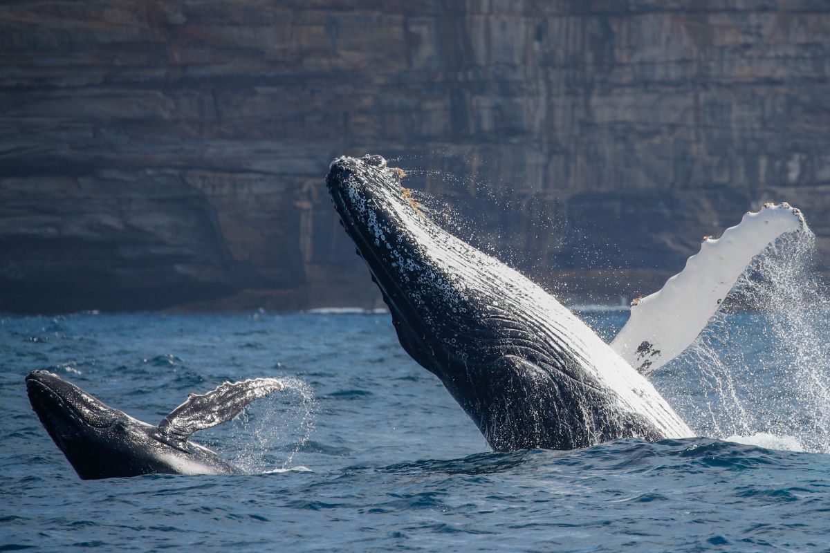 What followed was nothing short of extraordinary. A rare double breach. Then a triple. And then—almost mythical—a quadruple breach. Yes, you read that correctly: four fully grown Humpbacks launched skyward in perfect synchronicity. Three erupted close to the boat, with a fourth breaching beside the cliffs. The spectacle went on for almost an hour, leaving everyone speechless.